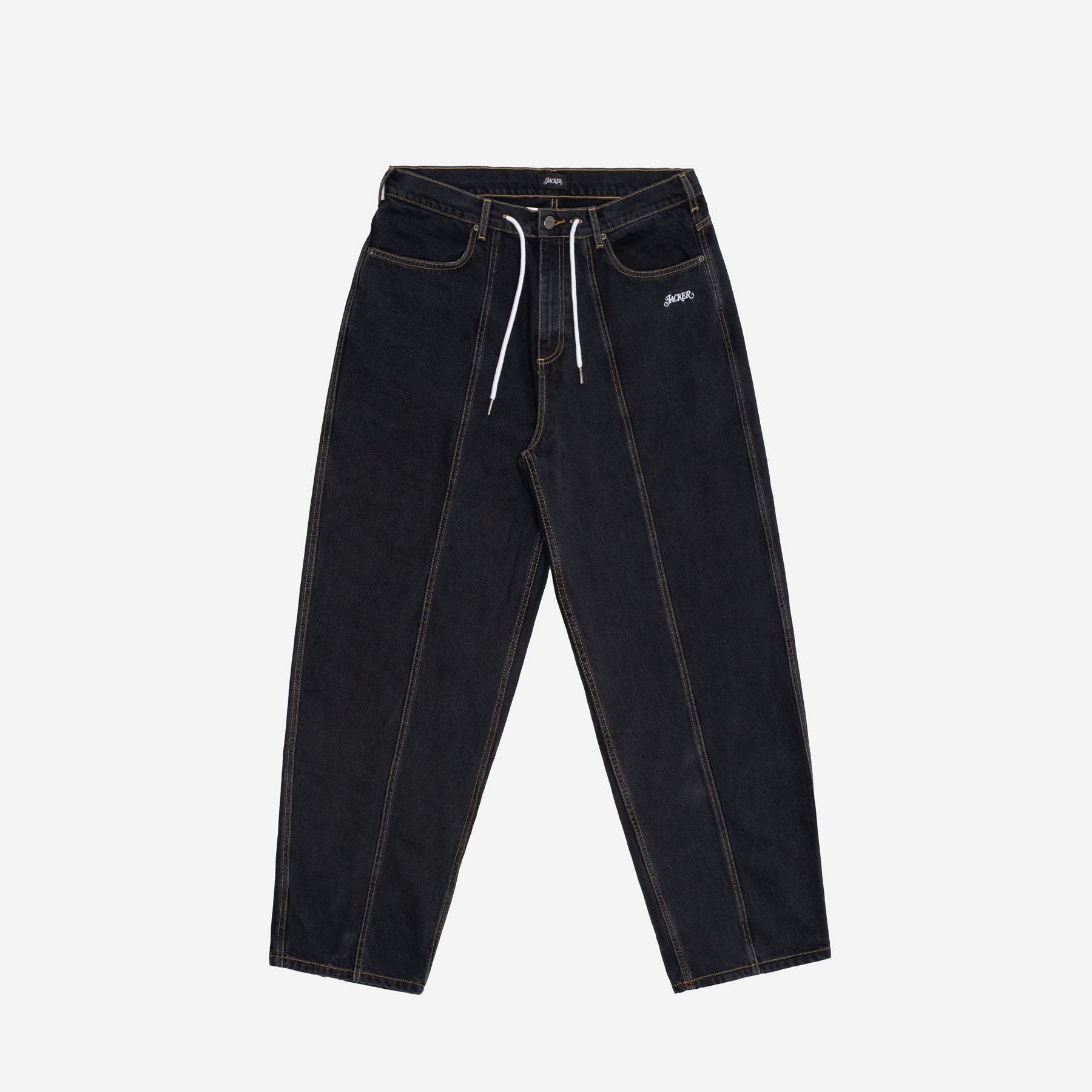 3 STRIPES DYED DENIM BAGGY PANT - BLACK