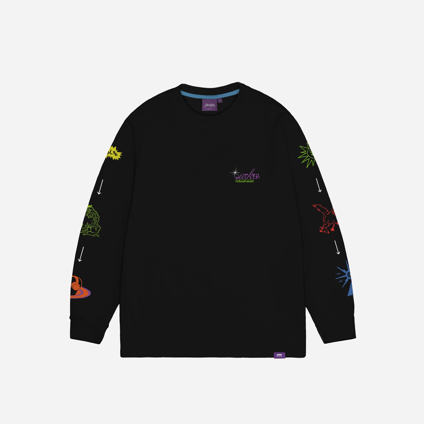 T-shirt manches longues, sérigraphies placées à l’avant et sur les manches.