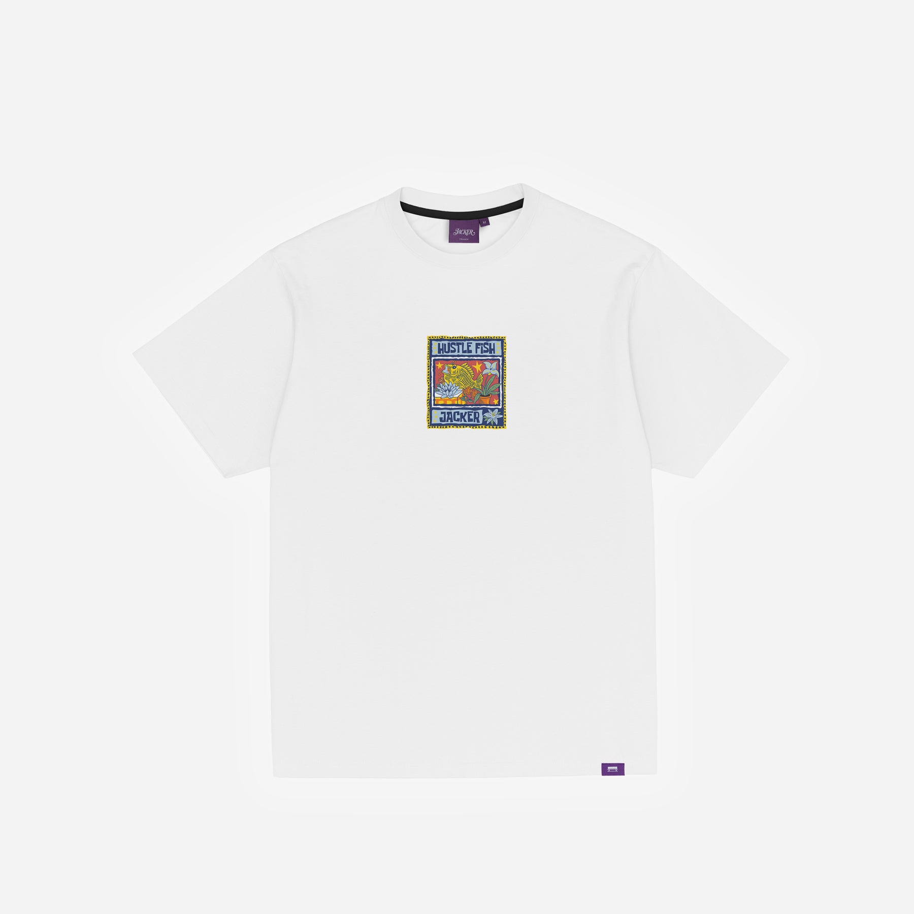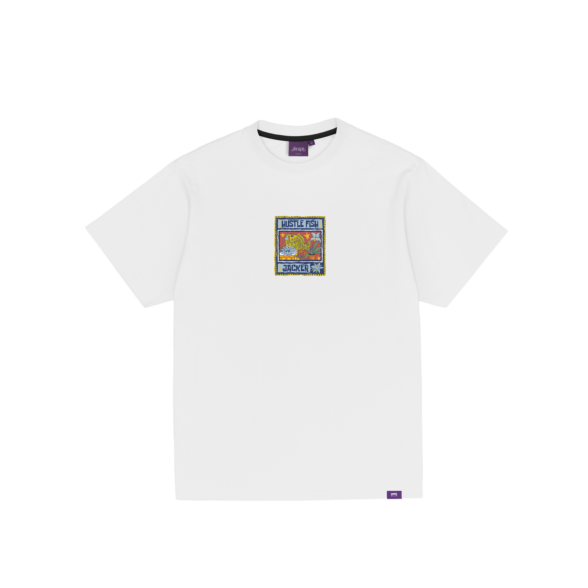 Patch textile cousu. Coupe droite légèrement ample.